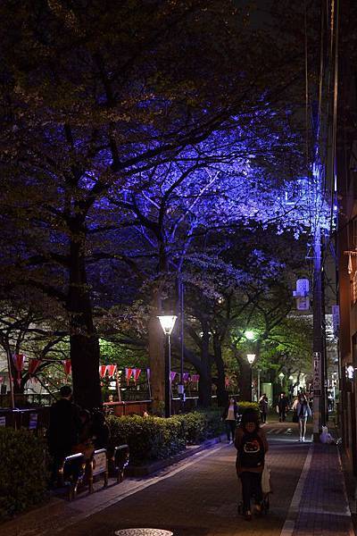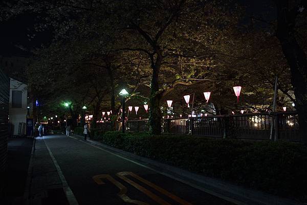 賞夜櫻的時段堤岸兩側才有點燈,時段一過就如同一般住宅區般~